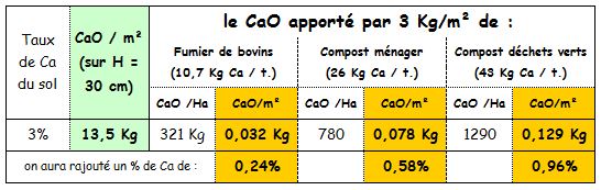 Quand on voit qu'1 Kg par m² de compost de déchets verts apporterait autant de calcium que 4 Kg de fumiers de bovins, on a le droit d'être un peu abasourdi de ne jamais être alerté par ces surcharges calciques.