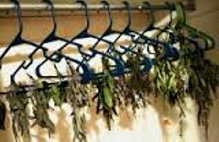 Vous disposez les bouquets d'herbes (pas trop gros pour une circulation d'air à l'intérieur), liées étroitement, accroché à l'envers et recouvert de papier ou tissu non-tissé laissée ouverte à des crochets de fond placées vers le haut dans les chambres sombres et ventilés ou dehors au soleil pour les ramasser dans la nuit pour éviter l'humidité.