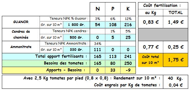 Je me suis amusé à calculer la fertilisation des tomates avec ce produit et voila à quoi on arrive :