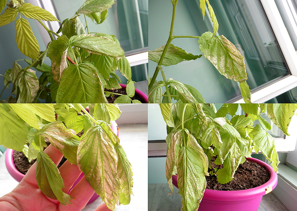 j'ai cherché les maladies des framboisiers, j'ai pensé à un champignon mais comment aurait-il chopé ça, ça fait 3 fois que je le met dehors ... à moins que ce soit avant que je l'achète évidemment.