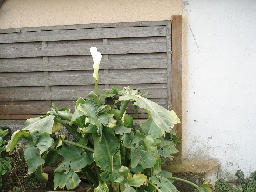 Pour l'arum d'Ethiopie, il faudra attendre encore quelques jours mais ses fleurs sont impressionnantes par leur taille : plus de 30 cm