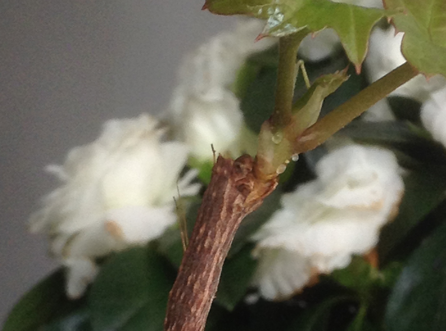 Les petites gouttes sont plus probablement des pontes d'insectes ; il vaut mieux les écraser.