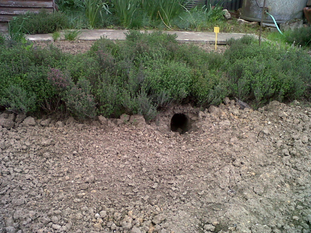 j'ai un locataire depuis 3 semaines dans mon petit jardin derrière la maison ,une lapine garenne qui a fait son terrier sous mon thym .dans ce petit jardin il n'y a pour le moment que 3 routes de poireaux en pépinière pour repiquage de juillet et 2 routes d'échalions.