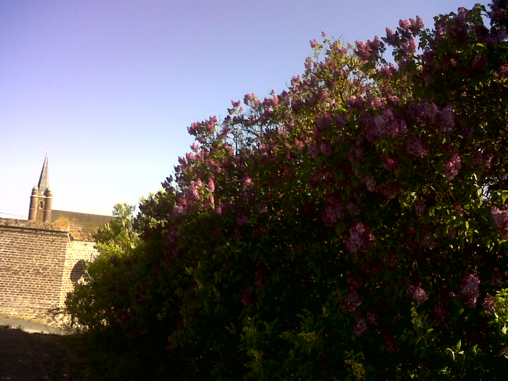 LILAS EN BOUT DE POTAGER ET CLOCHÉ DU VILLAGE