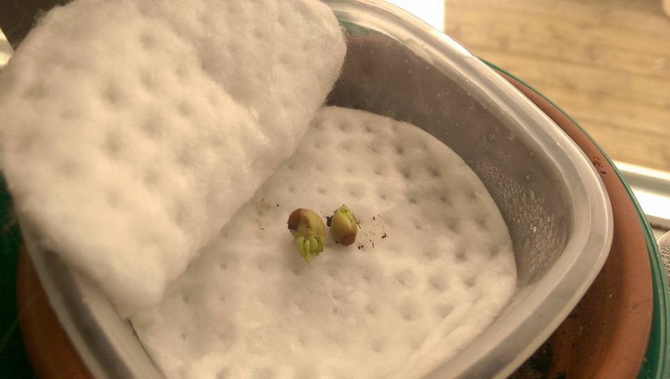 Mes graines de Kumquats mis dans des cotons pour qu'ils germent