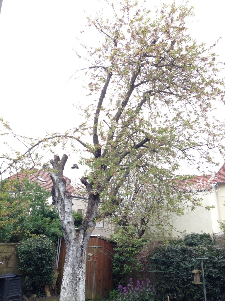 j'ai un vieux cerisier dans mon jardin, qui ne va pas fort : l'an passé de nombreux champignons sont apparus sur une partie de l'arbre qui était déjà malade. J'ai traité en mettant de la chaux; les champignons ne sont presque plus là mais depuis l'automne dernier toute une partie du cerisier semblait morte. Au printemps et à la floraison qui vient d'avoir lieu, aucune fleur ni feuille sur cette partie : j'ai donc coupé cette partie. Lors de la coupe, aucune sève, le bois était bien mort! Voir photos jointes.
