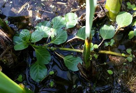 Voici une nouvelle photo de ce que j'appelle la plante aquatique. Elle est apparemment accrochée au fond de cette mare qui n'est pas très profonde (30 cm).