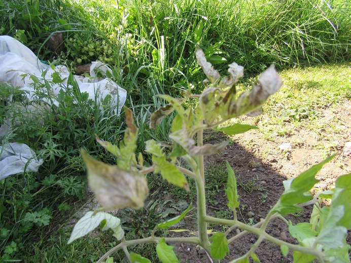 Il a planter ses tomates dans un carré il y 15 jours environ et depuis une semaine les feuilles du bas des plants ont commencé à jaunir puis des taches sont apparues.
