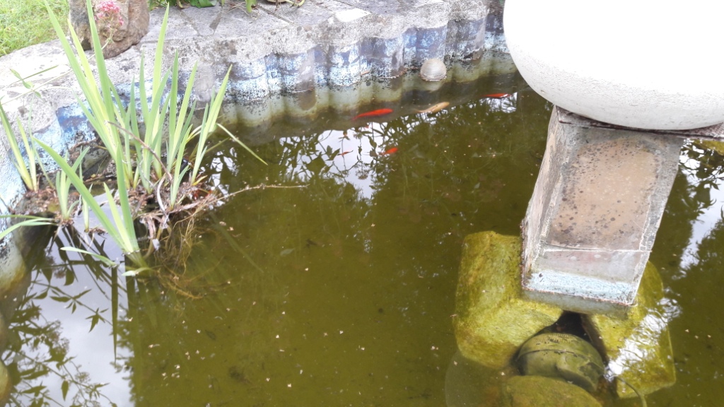 Je n'ai pas eu à rajouter d'eau hormis peut être lors des périodes de fortes chaleur l'été dernier mais ce n'était pas souvent. Les poissons se la coulent douce toujours autant...jamais nourris de l'année...il y a des petits, des noirs,des rouges, des bariolés des gros, des blancs...2 ou 3 pertes à déplorer en un an...