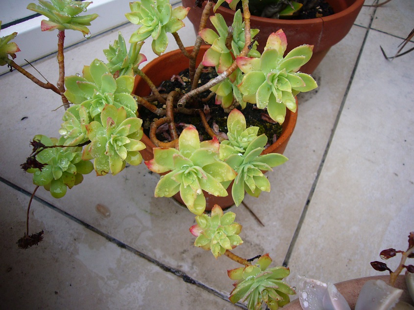 Juste pour vérification.... c'est bien un aloe vera ? Depuis le début de l'été, il pleut, le jardin apprécie, on manquait presque d'eau. Celui-ci, qui avait fleuri en jaune, si je ne confonds pas, est-ce un sedum ? Et lui ? Je l'aime beaucoup, il vient de presque rien, j'avais ramassé une feuille tombée à terre dans une jardinerie...