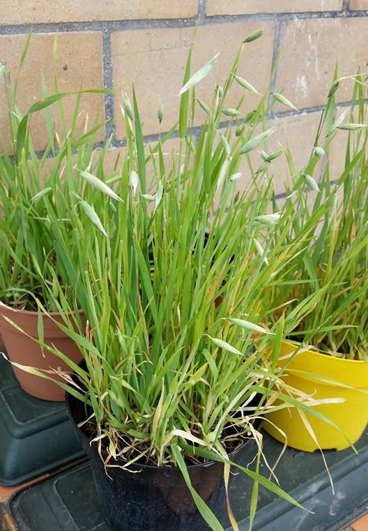 Les semenciers mettent de l'orge dans les paquets de graines "herbe à chat", mais ils peuvent aussi mettre de l'avoine ou du blé. On dirait bien de l'avoine qui ne s'est pas développée comme en pleine terre.
