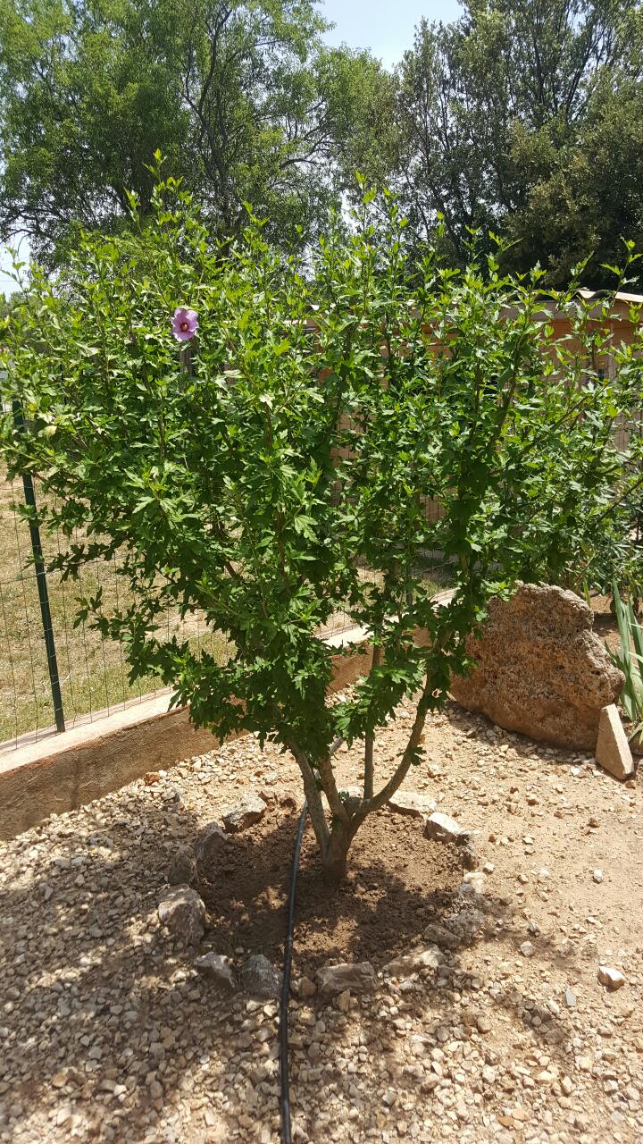 Bonjour, j'ai 3 hibiscus, 2 séparés par un rosier, le troisième étant à l'autre bout du terrain ; l'un des 2 proches, plus petit que les 2 autres me pose soucis. J'ai effectué un apport d'engrais par griffage au printemps pour tous.