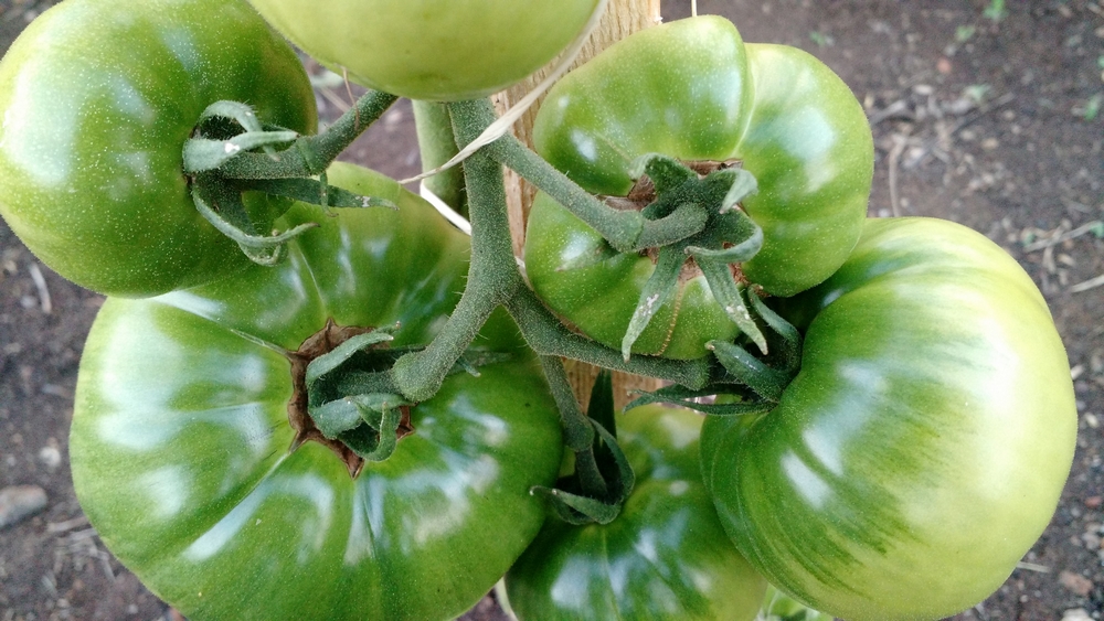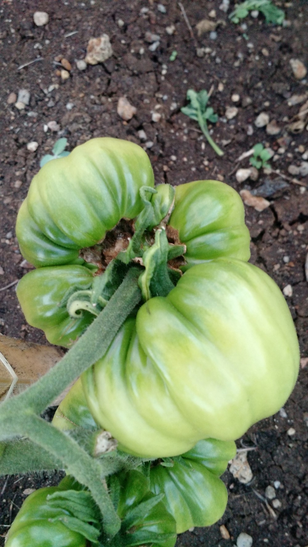 Sur la seconde, il se pourrait que l'important creux de l'attache , génère une pourriture conséquence d'accumulation d'humidité. J'ai eu cela récemment sur 1 tomate. Elle flétrissait par le pédoncule, où une tache brune s'établissait. Pour autant, ses compagnes de bouquet ne sont pas atteintes.
