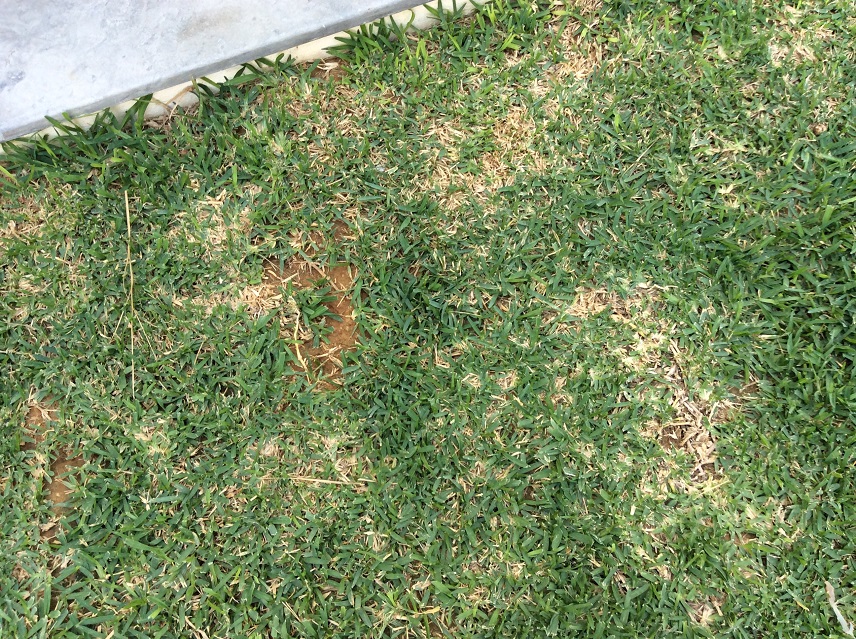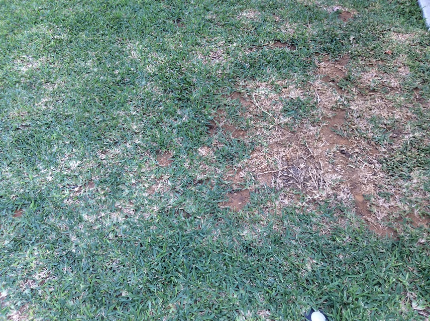 J'ai un problème avec mon gazon canadien (ou américain), il est assez récent: 4 mois d'âge, mis en place par bande et non-semé , terre alcaline (très alcaline), eau très calcaire et , a subi un coup de sécheresse de 4 jours (arrosage automatique en panne et nous en vacances )... mais depuis 1 mois arrosé tous les jours et n'arrive toujours pas à repartir. Aussi bizarrement fait des alopécies ci et là, certaines parties restent complément dégarnies. Nous avons consulté les "pros", qui ont conseillé de nourrir le gazon, c'est ce que nous avons fait avec des granulés, mais vous avez les résultats sous les yeux.