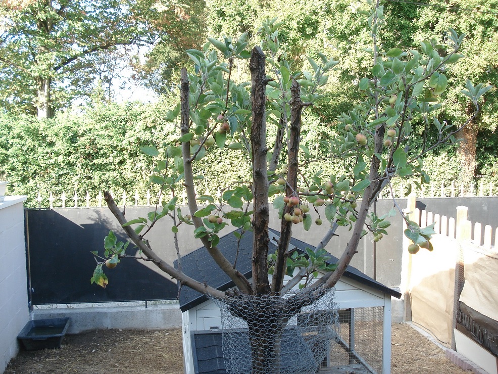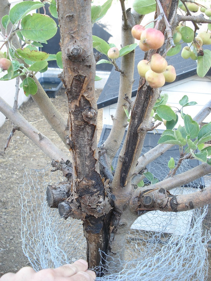 A oui il est pas très jolie ce pommier, son acclimatation c'est mal passée. Je vois qu'il a eu des échaudures sur ses axes.
