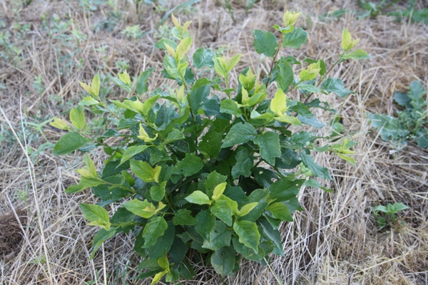 Au milieu de cette partie grillée par le désherbant renaissent quelques plantes que je ne connais pas.