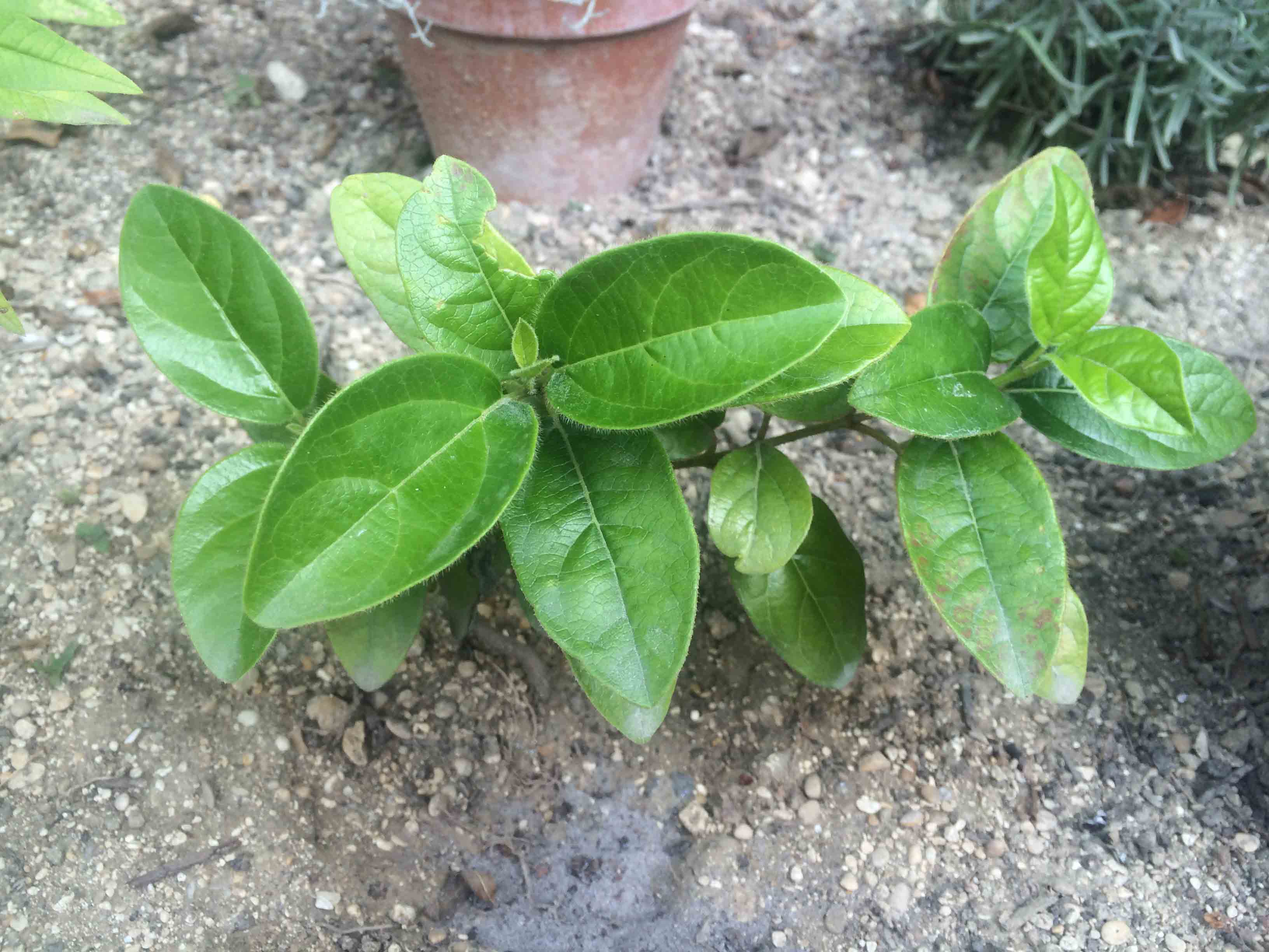 J'avais acheté il y a quelques moi un Viburnum Tinus planté aujourd'hui dans mon jardin et je n'ai pas fait le rapprochement . Ce petit spécimen ramené du sud a les feuilles plus arrondies .