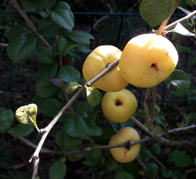 Nous avons un cognassier "normal" plus celui du voisin aus fruits géants qui tombent de notre côté et un japonais.