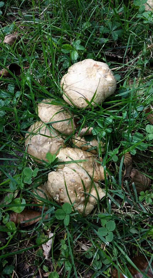 Sur la pelouse à proximité de vieux aulnes, ils viennent juste d'apparaître et mesurent 7 à 8 cm de diamètre.