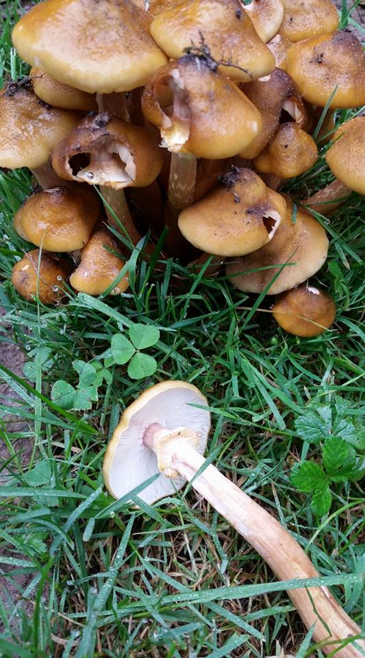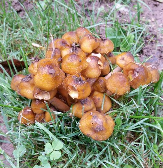 Cette année les armillaires sont apparus au pied d'un très vieux pommier qui était très mal en point => normal. La sècheresse (ou les armillaires) l'a achevé !