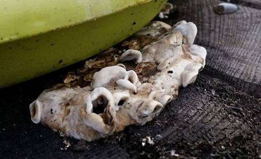 En fait, les souches sont souvent recouvertes de ces choses blanchâtres, plus ou moins grosses. Peut-être des polypores en formation ???