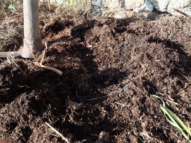 Et comme il est plein d'asticots et de puces de mer, quand je l'étale dès que je m'éloigne les merles, moineaux, bouvreuils etc vont aussi fouiller dedans -> re-fertilisant !