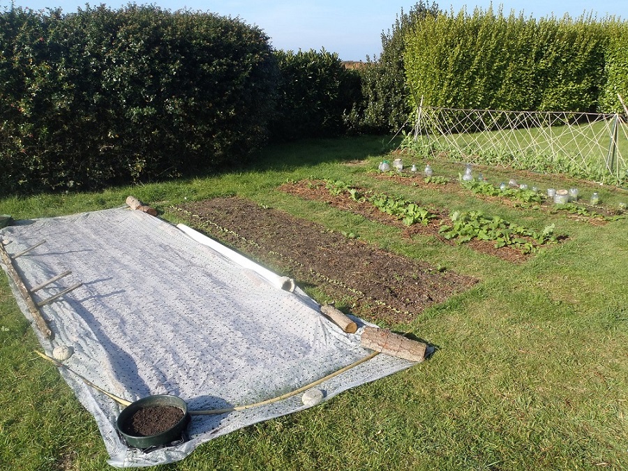 Et comme je crains que ça ne soit un peu trop appétissant pour les lapins, les faisans et autres merles j'ai recouvert de branchage, mais pas sûr que ça suffise à les décourager.