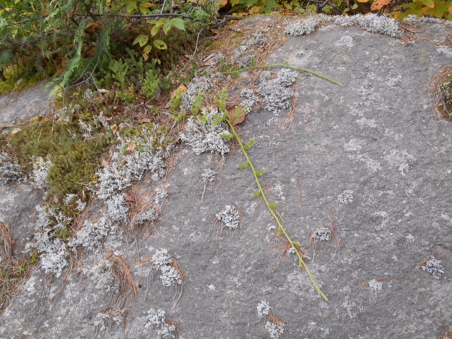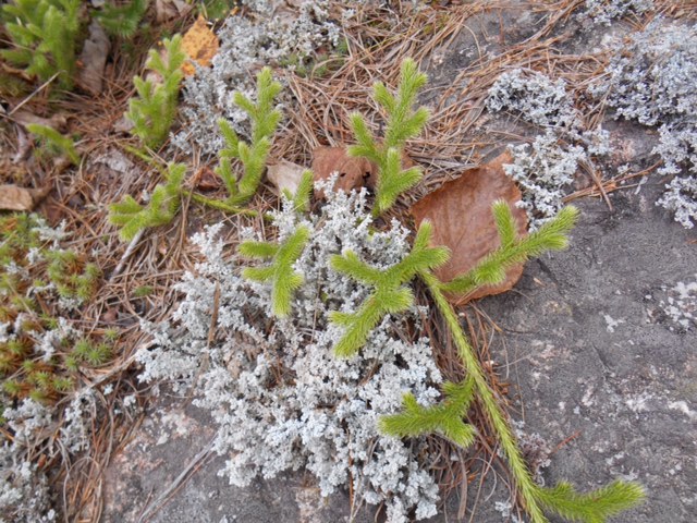 Voici une plante rencontrée sur un rocher, je parle de la plante verte, pas du joli lichen gris , elle avait l'air de ramper , et ça ressemble à une branche de sapin , ce que ce n'est pas bien sûr ,