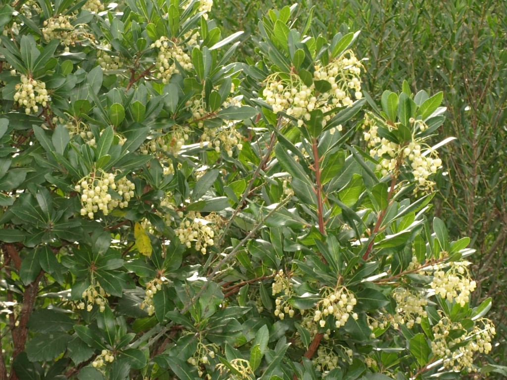 Deux photos de l'arbuste, plus, à titre de comparaison, une d'Arbutus unedo, en fleurs...