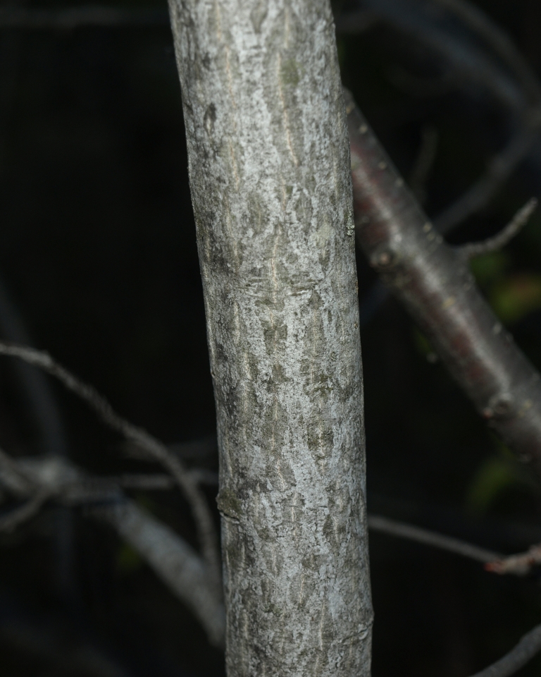 Je suis retourné prendre la photo du tronc du présumé Rhamnus : écorce lisse.