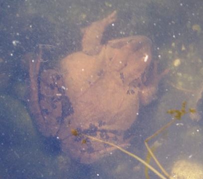 En nettoyant les bords de mon bassin, j'ai été surpris de trouver un batracien encore dans l'eau alors que je pensais qu'ils hibernaient hors de l'eau.