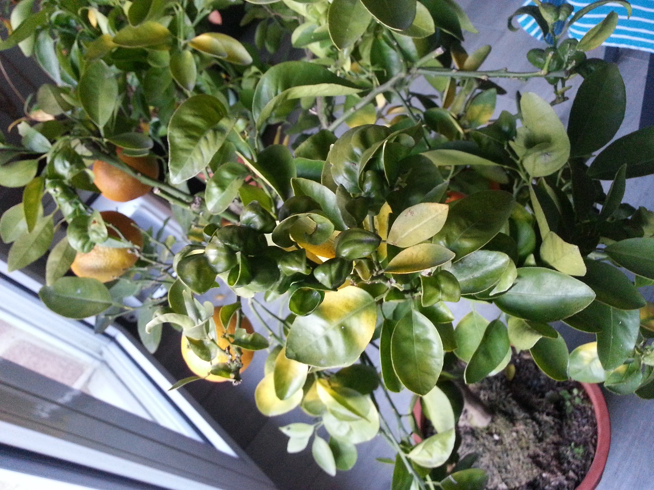 A la vue des feuilles, une carence avérée en azote, fer et magnésium, mais ce n'est pas grave, ça attendra le printemps comme le rempotage dans un substrat terreau et 30% fibre de coco.
