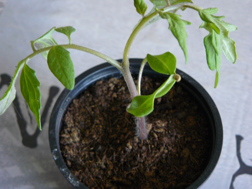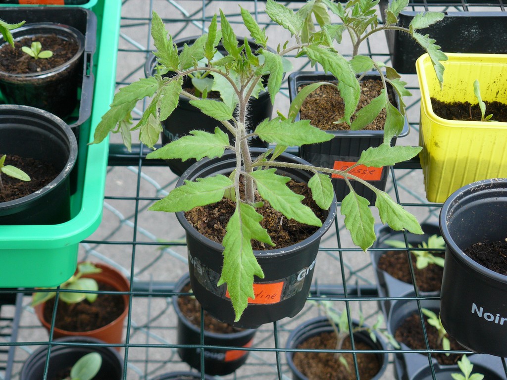 J'avais semé quelques graines de tomates le 5 Mars en pleine terre sous tunnel de forçage , voila un des plants que j'ais repiqué en godet ce matin :
