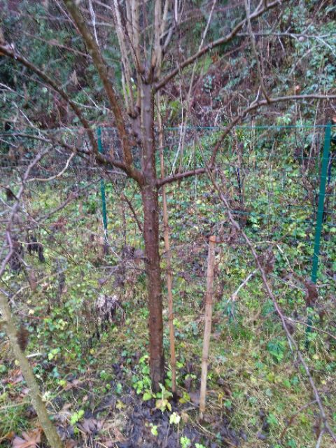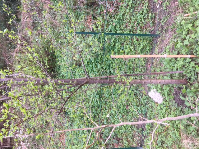 Voici une nouvelle photo : le piquet bambou au pied à droite fait 1m (le clair pas le petit collé au prunier)