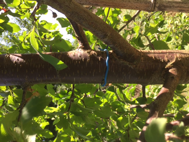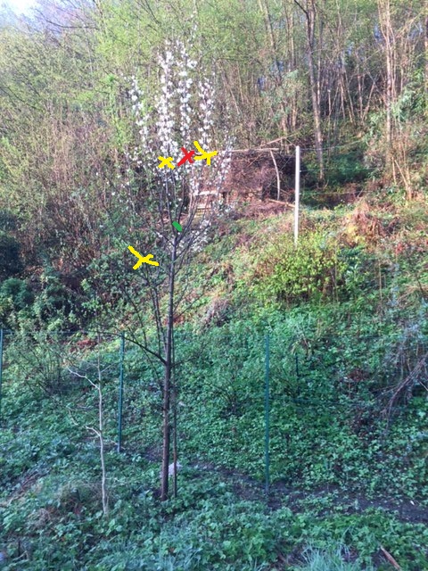 Les branches marquées d'une croix jaune je vais les arquer vers le bas (poids ou ficelles avec piquets au sol)