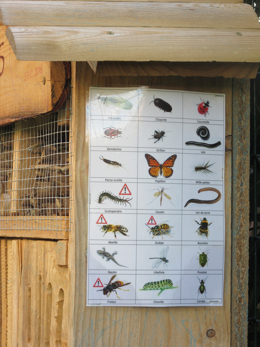 Je l'ai construit plus pour lui montrer comment bricoler (car il aime ça) plutôt que pour les insectes, car je ne croyais pas trop que ça marcherais... même si je l'ai fabriqué dans les règles de l'art (pas de bois traité, casier respecté, choix des insectes, ...).
