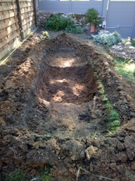 Pour mon nouveau potager qui est plein soleil maintenant, j'avais besoin de terre car la terre y était moins belle. J'ai donc décidé de déplacer de la terre et l'idée m'est venue de faire un bassin à la place de l'ancien potager.
