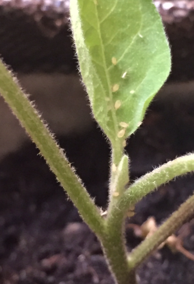 J'observe la présence de petits parasites sur le dessous et dessus des feuilles de jeunes plants potager - ce sont des plants provenant d'une pépinière bio, que j'ai planté dans un terreau potentiellement un peu vieux.