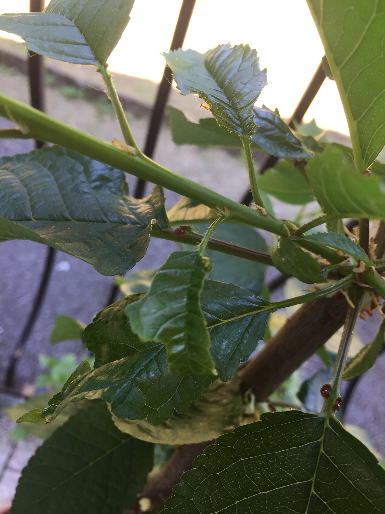 je rencontre un problème avec un cerisier en pot planté cette année, certaines feuilles semblent être grignotées par je ne sais quoi, je n'ai absolument rien vu dessus, ni dessous, ni dans la terre où j'ai mis du marc de café. C'est pas faute de le scruter sous tous les angles depuis que je me suis apercue de ça.