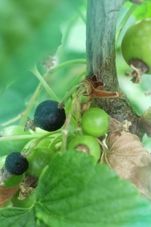 j'ai un p'tit souci avec mes cassissiers : les grains sont tous verts (normal à ce moment de l'année) mais il y en a quelques uns qui sèchent, se rabougrissent et sont tous noirs (je poste une photo).