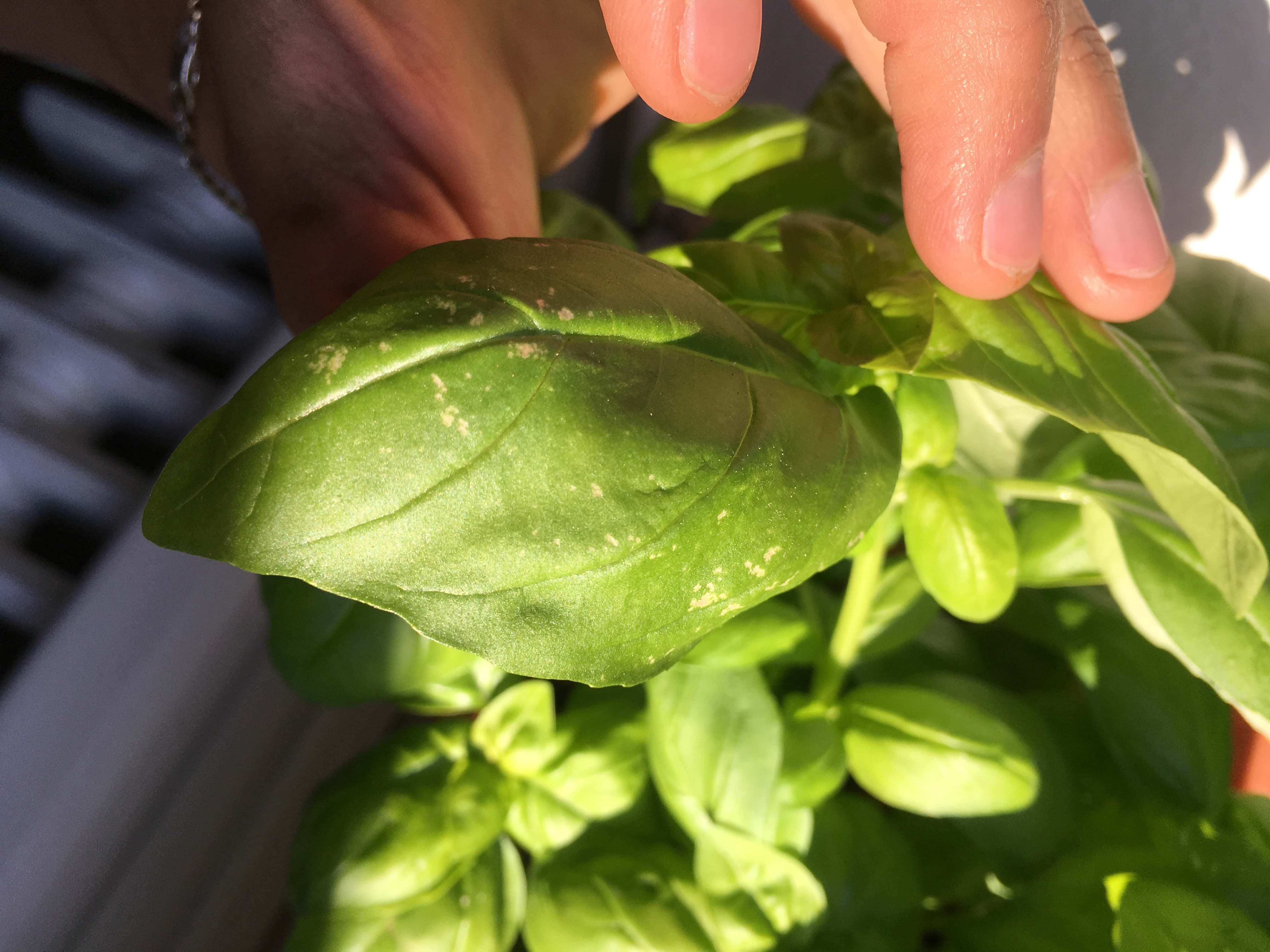 Il y a une quinzaine de jours j'ai commencé à planter des plantes aromatiques. Après très peu de temps j'ai vu apparaitre des taches blanches, d'abord sur le thym puis sur le basilique puis maintenant sur tout sauf le persil. Les plantes sont en pot, en les remuant un petit peu j'ai vu de petits insecte s'envoler et après une recherche sur internet je ne trouve pas ce que c'est...
