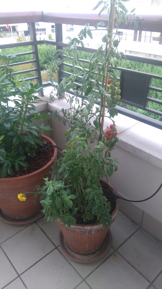 J'ai sur mon balcon un plant de tomates cerises et un basilic dans le même pot et tout se passait bien depuis avril.