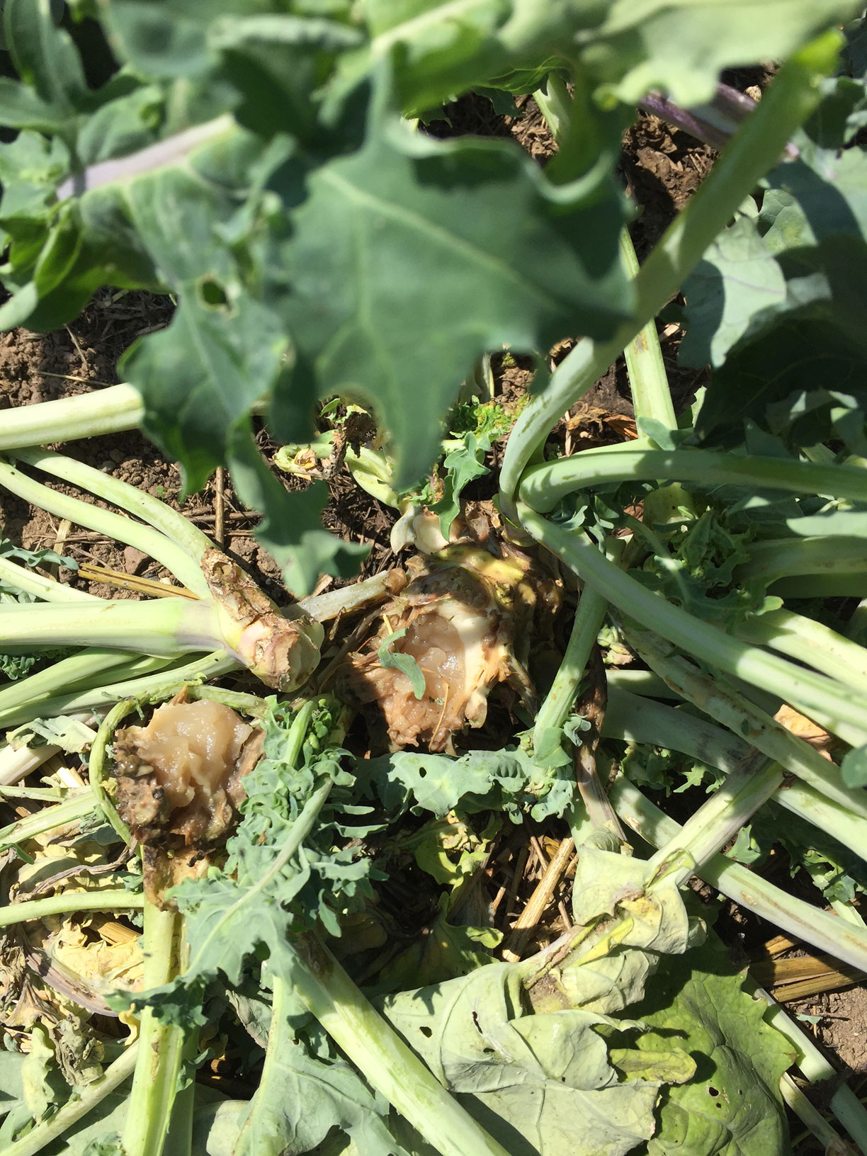 Le choux sur la foto a eu beaucoup d'eau, mais surtout il y'a eu une attaque d'une mouche mineuse, qui a pondu au collet, la larve s'est dévelloppée dans la moelle, celle ci a pourri et les dégats ont tardé a se faire voir.