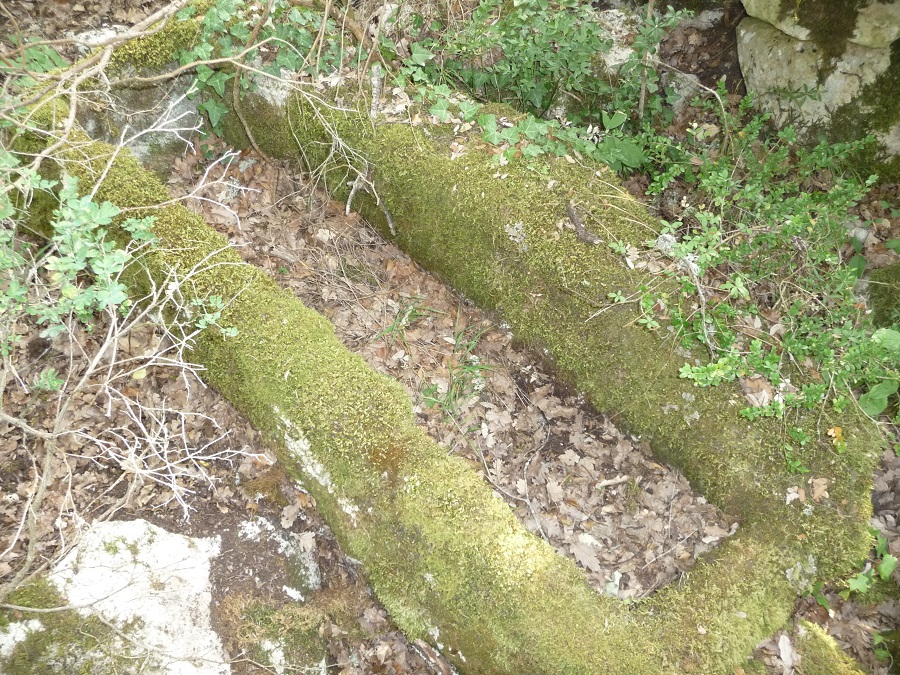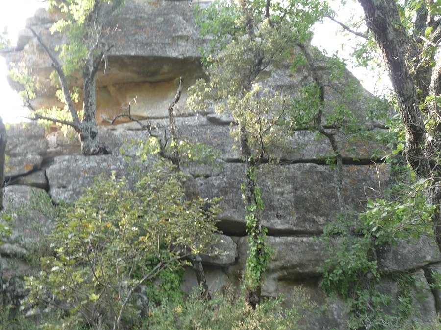 Voici un rocher ayant une bonne configuration pour en extraire des blocs : Ces photos sont prises sur l'emplacement aproximatif de l'ancien village de Saint Germain (commune de Buoux) . Village dont on a du mal aujourd'hui à simplement distinguer les ruines ,parait il qu'il y avait une église et une nécropole comportant 80 sarcophages dans une caverne . L'archéologue officiel du coin m'a soutenu mordicus que c'était vrai et je lui ai demandé de m'emmener voir et là...plus personne . J'ai exploré le pied des falaises pendant des jours et je n'ai rien trouvé , je continuerai cet hiver quand j'aurai plus de temps .