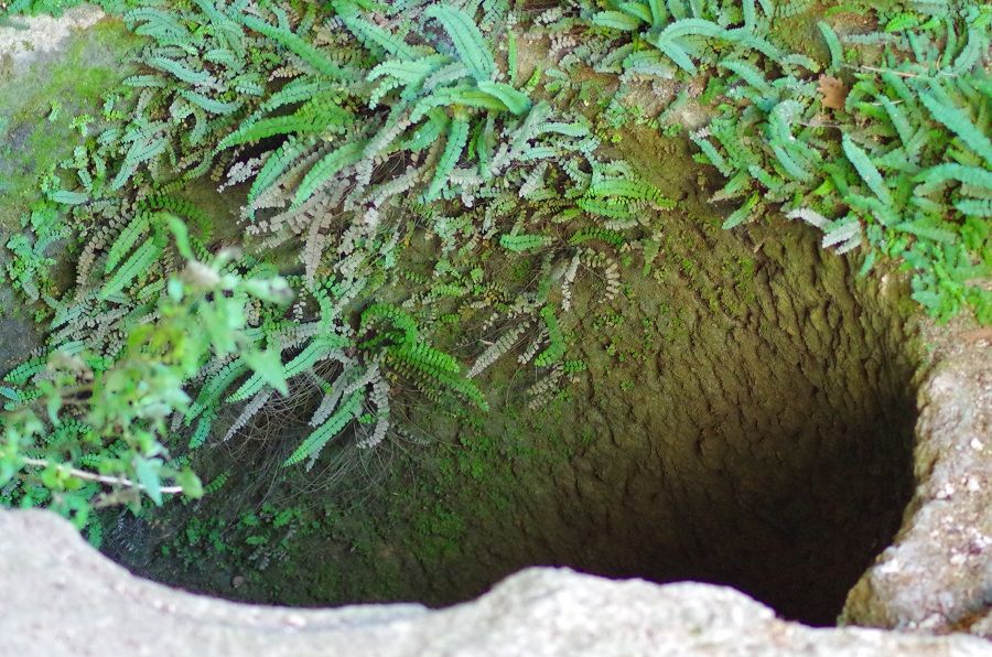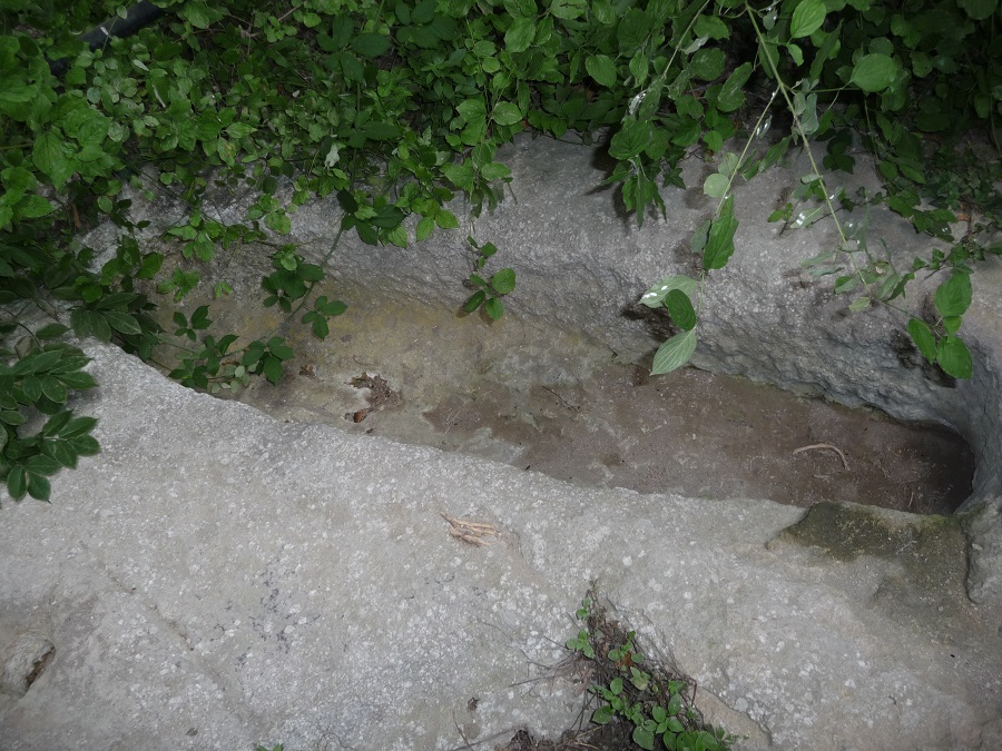 En voici une première quand on y est on voit bien qu'elle a été creusée de A à Z . Sur cette photo bizarre ,si on se force on voit qu'un trou dans le roc canalisait l'eau le long de la paroi au moyen d'une rigole creusée de main d'homme , qui aboutissait dans une cuve taillée elle aussi dans la pierre (non photographiée ) .Il y a aussi d'autres trous creusés dans les parrois qui devaient servir à quelque chose .
