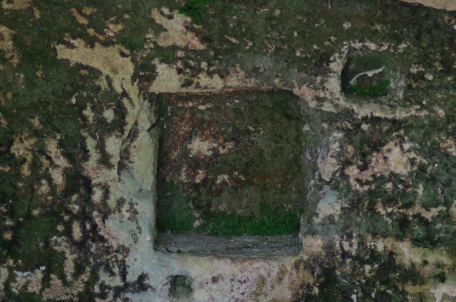 Sur la gauche on voit bien un arc de cercle dans la pierre , ne me demandez pas ,je ne sais pas ce que c'est .