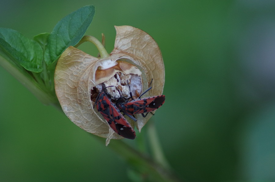 Alors faute de mieux je remet la photo de l'amour en cage qui sers de casse croute à deux bestioles (des punaises m'a t'on dit .)