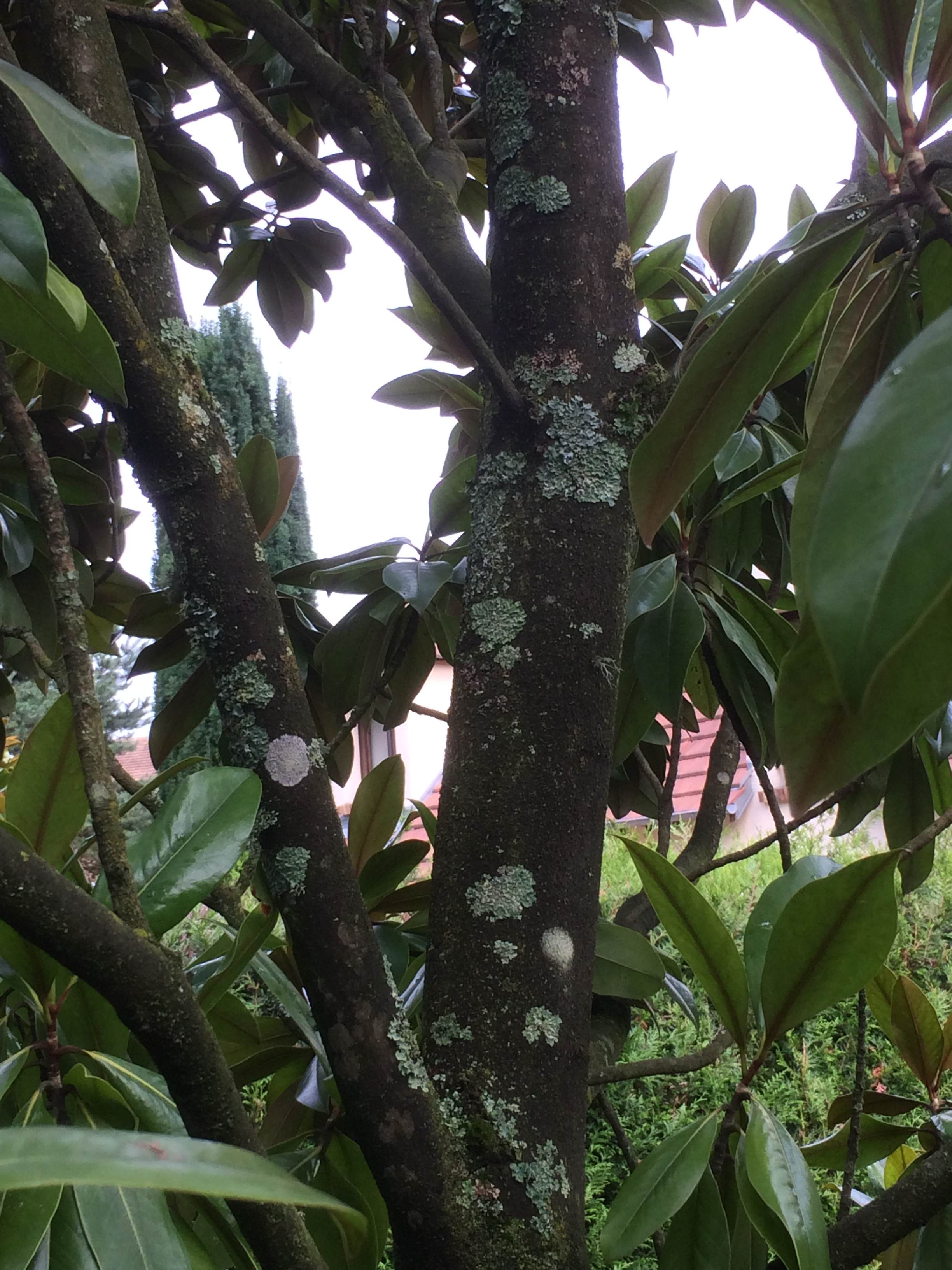 Novice en jardinage, je m'interroge sur les tâches présentent sur un magnolia grandiflora et un vieux pommier.