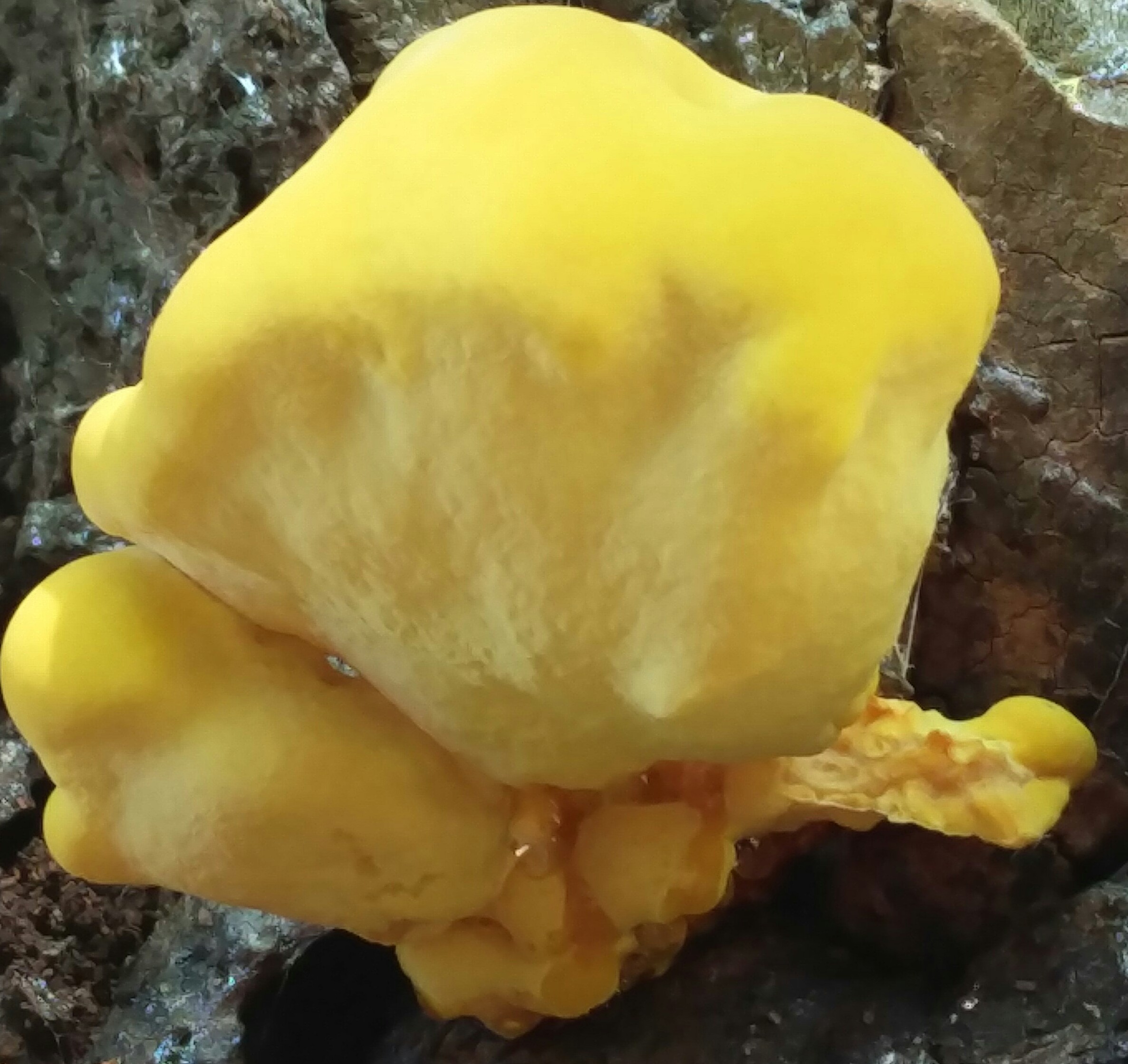 Je viens de remarquer un champignon (?) sur notre cerisier qui ressemble à une sorte d'éponge jaune vif.