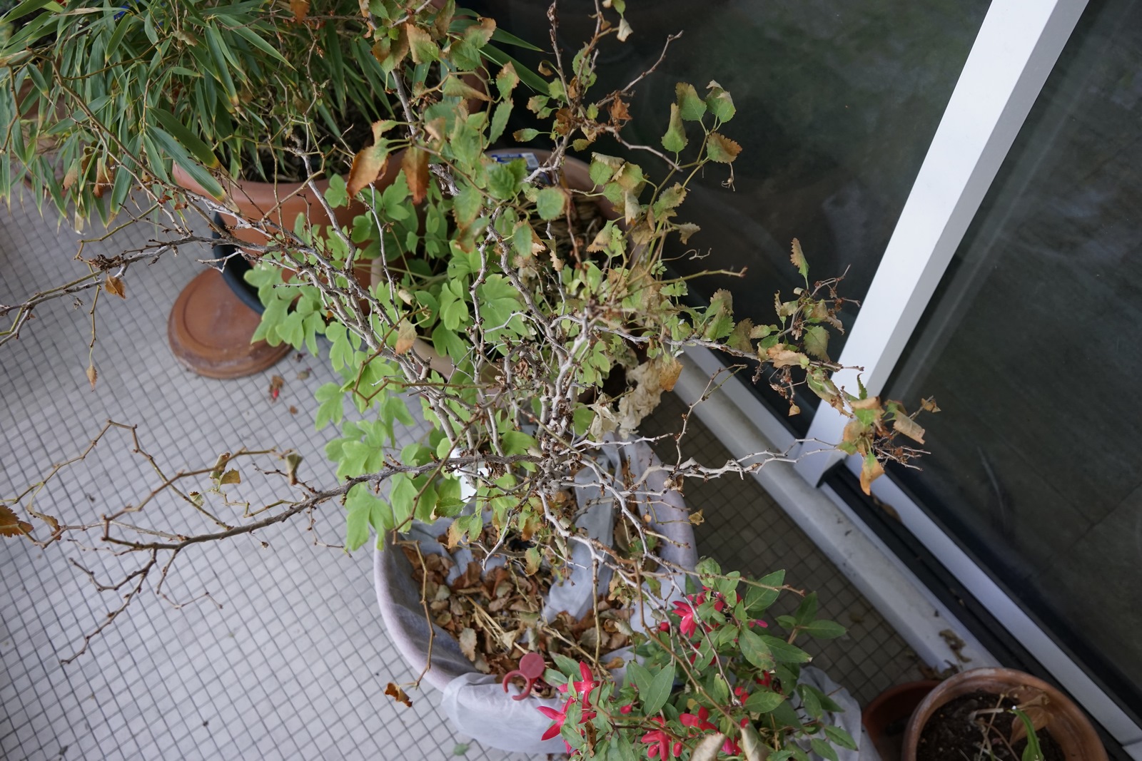 Dites, j'ai un cerisier du Japon sur mon balcon qui est mal en point. Il prend le soleil à partir du milieu d'après-midi. Il a perdu une bonne partie de ses feuilles, elles ont roussi, sont un peu molles. Le bois n'est pas mort.
